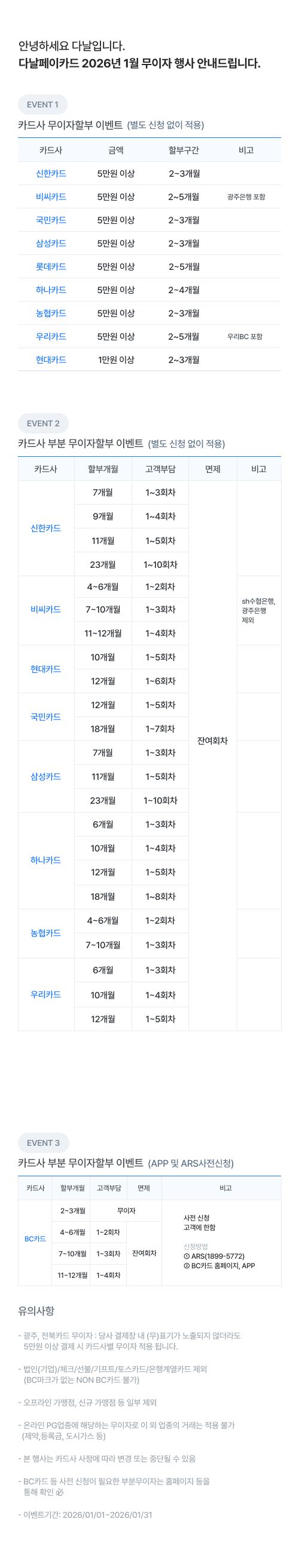 [2026년 01월] 다날페이 카드사별 무이자 및 부분무이자 안내