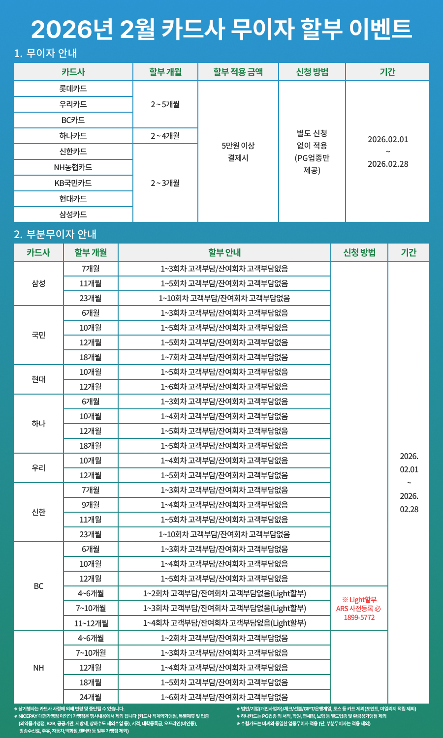 [2026년 02월] 나이스페이 카드사별 무이자 및 부분무이자 안내