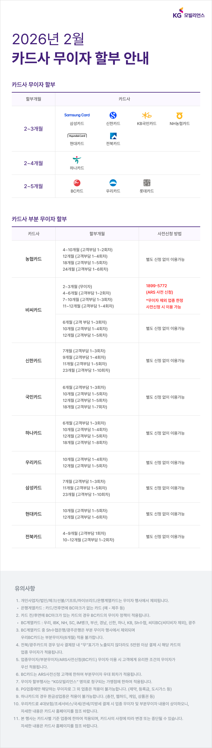 [2026년 02월] 모빌페이 카드사별 무이자 및 부분무이자 안내