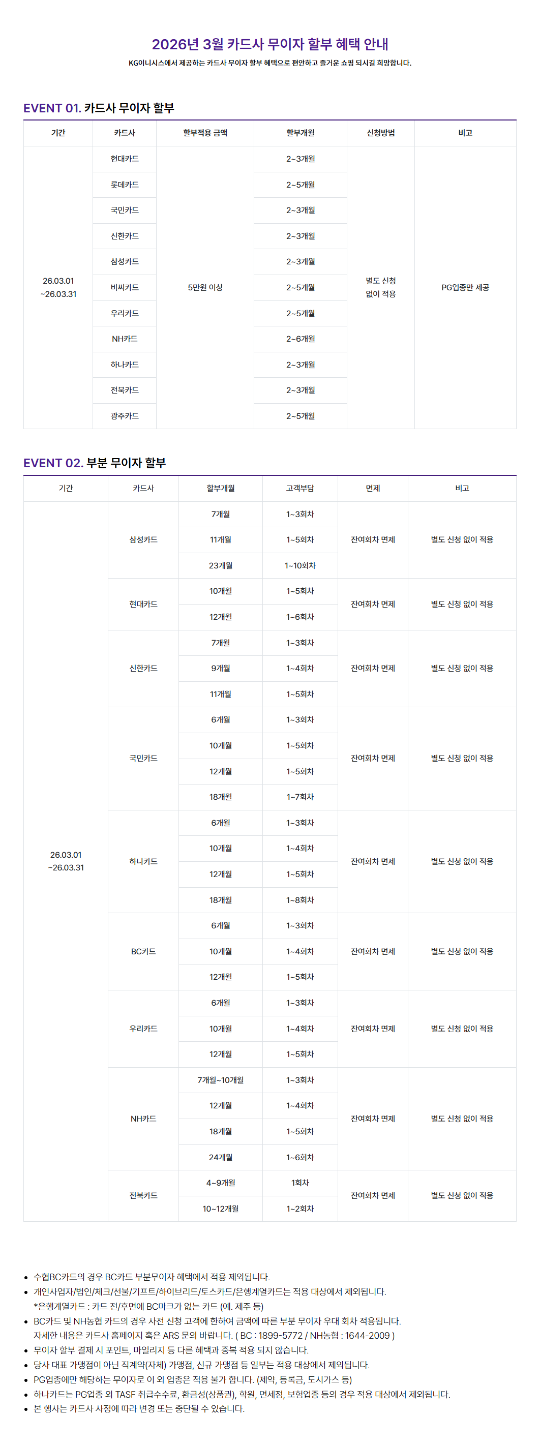 [2026년 03월] 이니시스 카드사별 무이자 및 부분무이자 안내