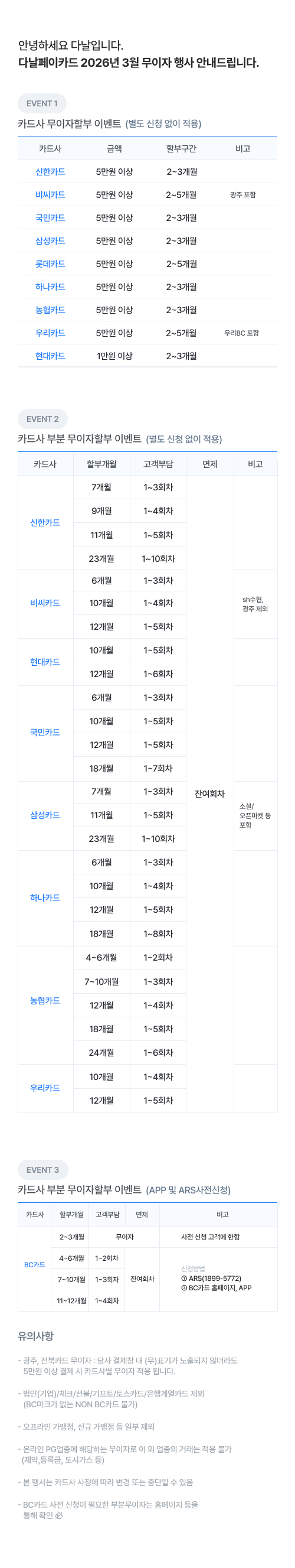 [2026년 03월] 다날페이 카드사별 무이자 및 부분무이자 안내