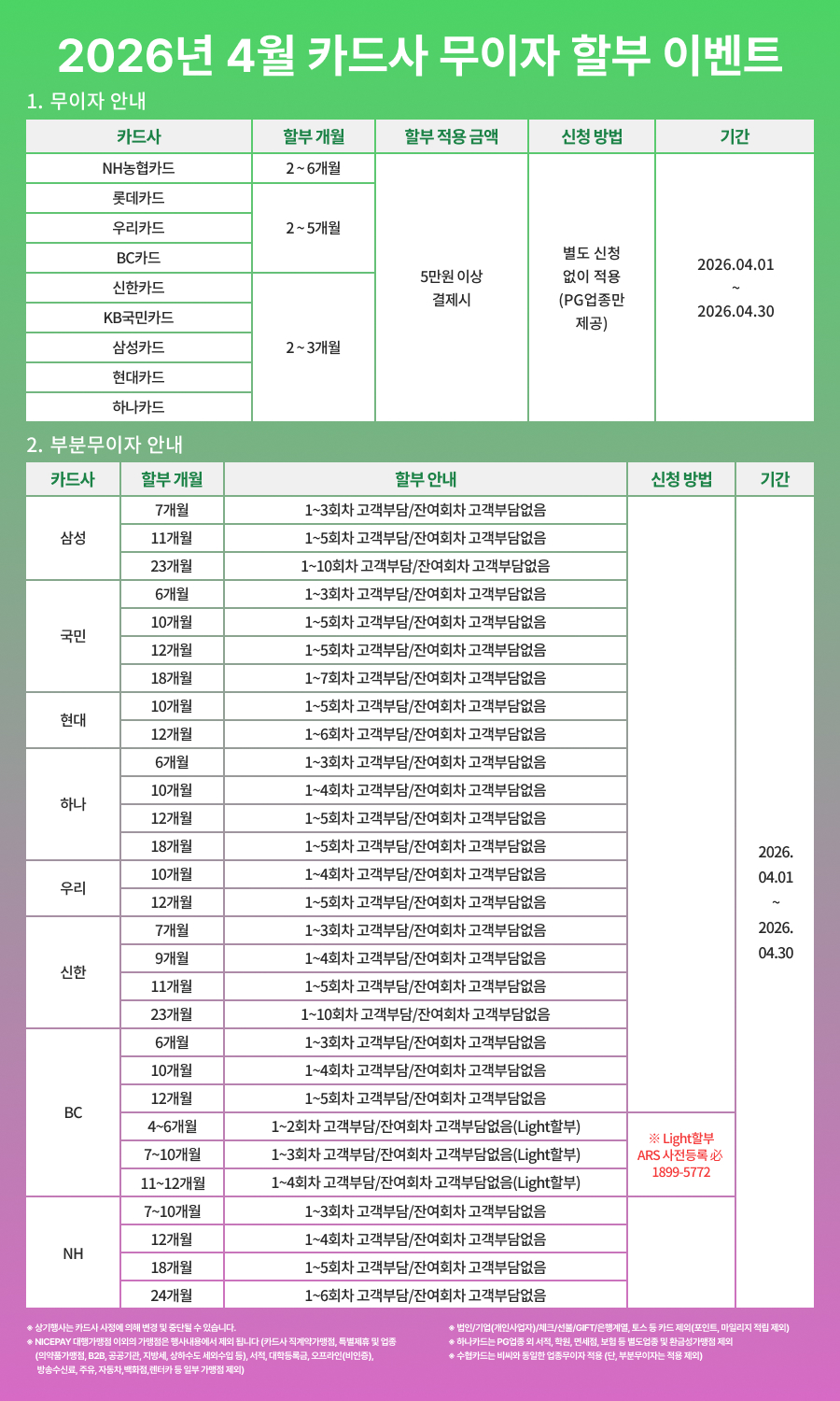 [2026년 04월] 나이스페이 카드사별 무이자 및 부분무이자 안내