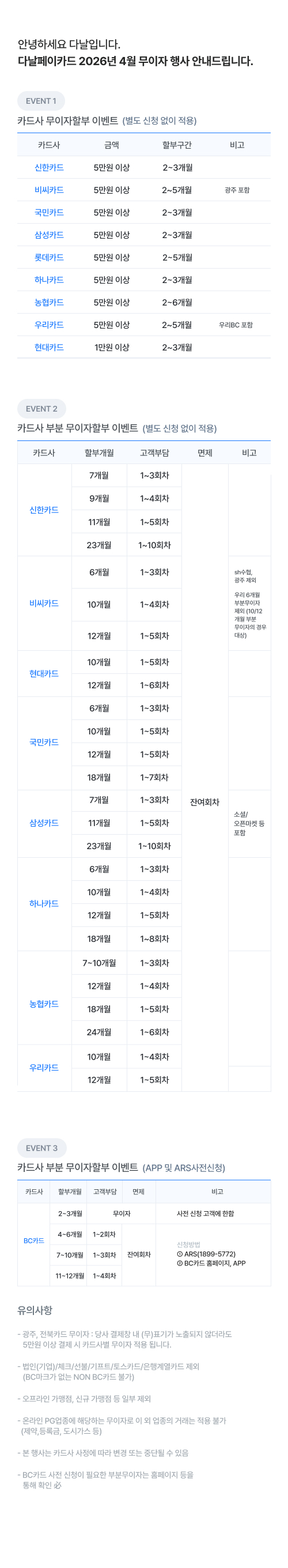 [2026년 04월] 다날페이 카드사별 무이자 및 부분무이자 안내